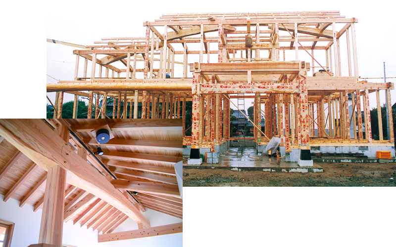 これが、私たちの理念です。当社は、伝統的な工法に新しい技術をプラスし木づくりの住まいにこだわっています。木の薫りは気持ちをなごませ、住む人の健康にもよい影響を与えます。また木の家は耐久性にすぐれているとともに設計の自由度が高く暮らし方に合わせた住まいづくりが実現できます。